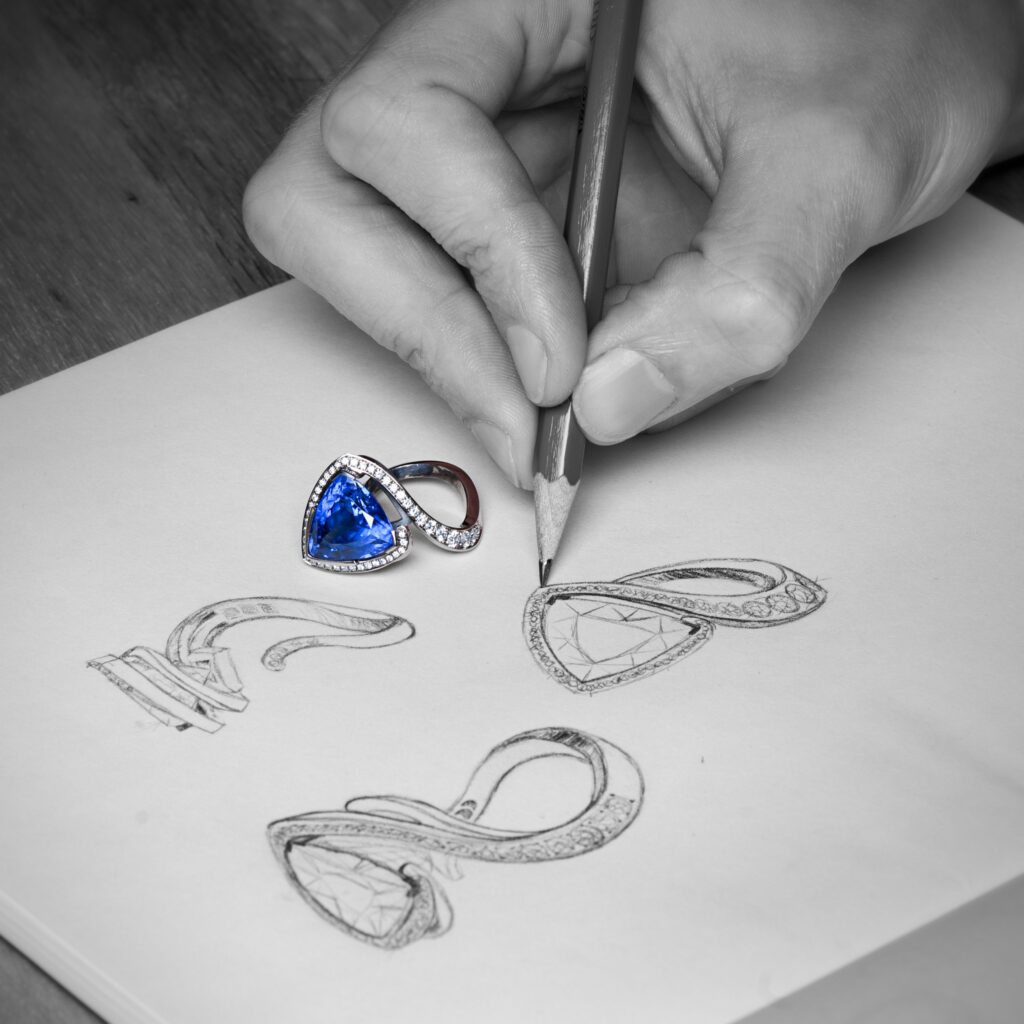 Des esquisses pour visualiser et personnaliser un bijou unique : le vôtre.